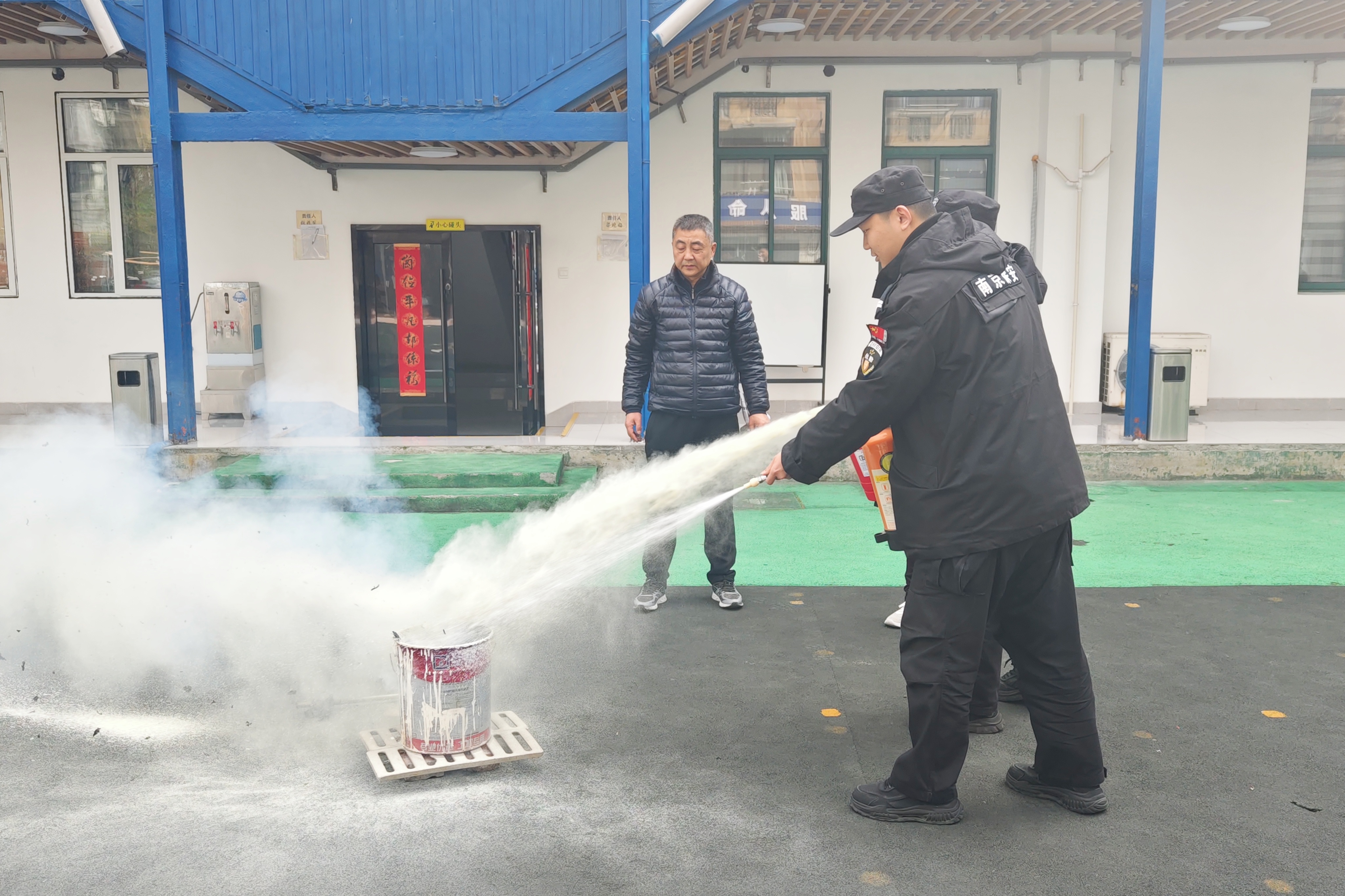 演练现场分设消防器材教学区与实操演练区,消防教官结合基地环境特点,详细讲解了各类消防器材的日常检查要点,从压力表指针范围、保险销完好性,到灭火器材有效期、器材摆放规范,通过直观演示,将专业理论知识转化为通俗易懂的操作方法。
