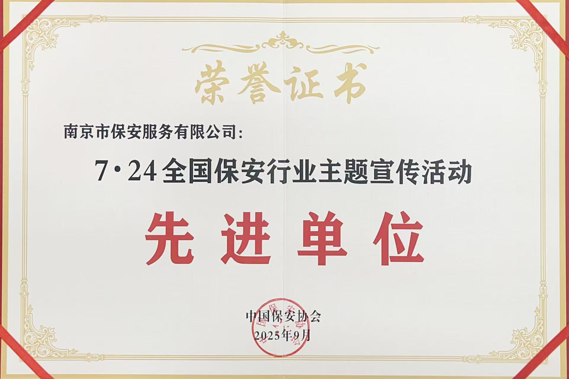 724全国保安行业主题宣传活动先进单位