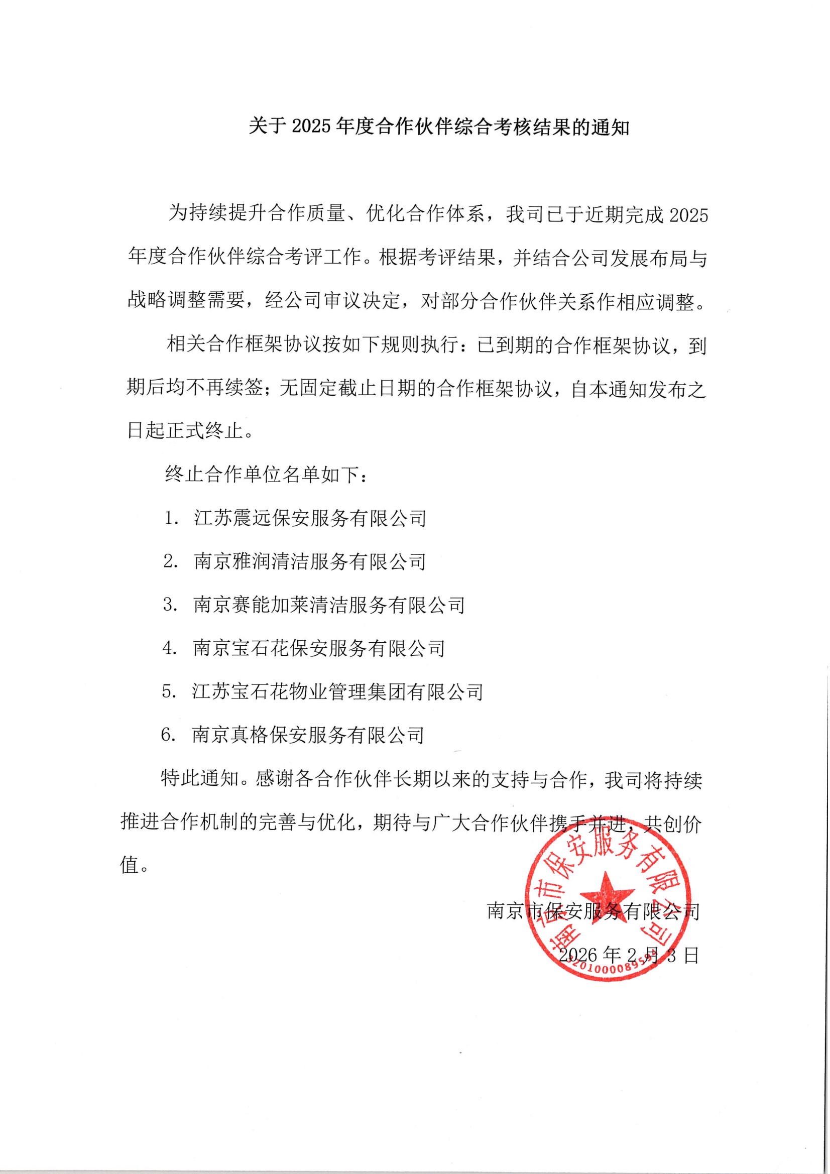 关于2025年度合作伙伴综合考核结果的通知