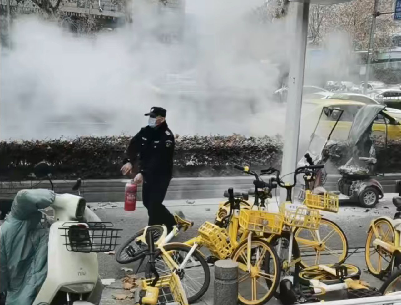 电动车突发自燃 南京市保安服务有限公司玄武分公司保安员火速扑救化险为夷
