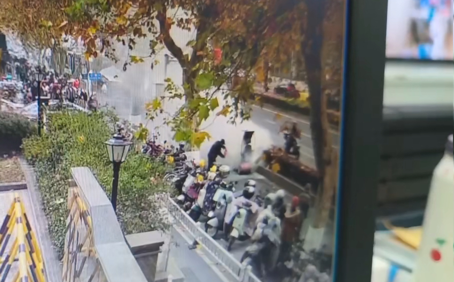 事发时,一名路人骑行电动车沿医院门前慢车道行驶,车辆突然冒黑烟并窜出火苗,瞬间吞没车身,骑车人受惊下车后不知所措。事发地点紧邻医院入口,行人和车辆密集,火势一旦失控,极易引燃周边车辆、危及市民安全。