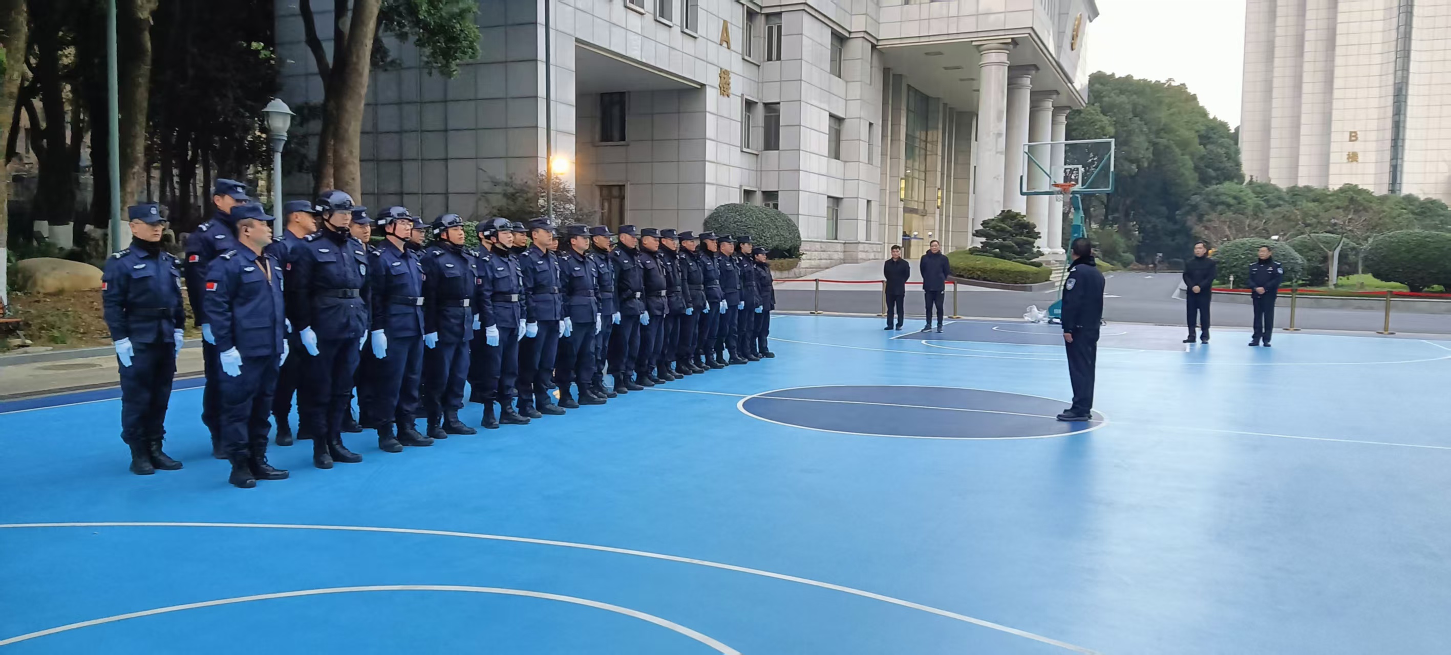 2026年1月8日清晨7时,南京市保安服务有限公司鼓楼分公司(以下简称“鼓楼分公司”)以威武整齐的阵容、崭新昂扬的姿态,正式接手江苏省公安厅机关大院保安服务项目,顺利完成安保工作无缝交接。