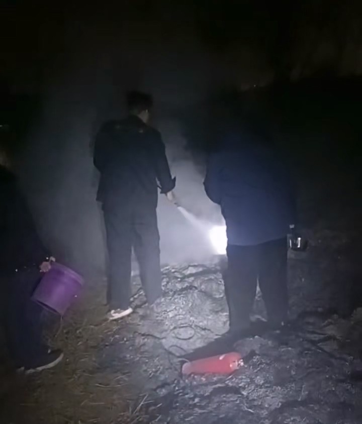 马昌乐立即上报情况,分队长高春勇迅速带领队员蒋俊子、吴守龙、孙双其、高永军、代航龙、周锁宝、李超携带应急器材赶往现场。面对可能蔓延的火势和随风飘散的火星,队员们沉着应对,运用日常消防训练技能,仅用十余分钟便将明火扑灭,有效防止了火势扩大和再次起火的风险。